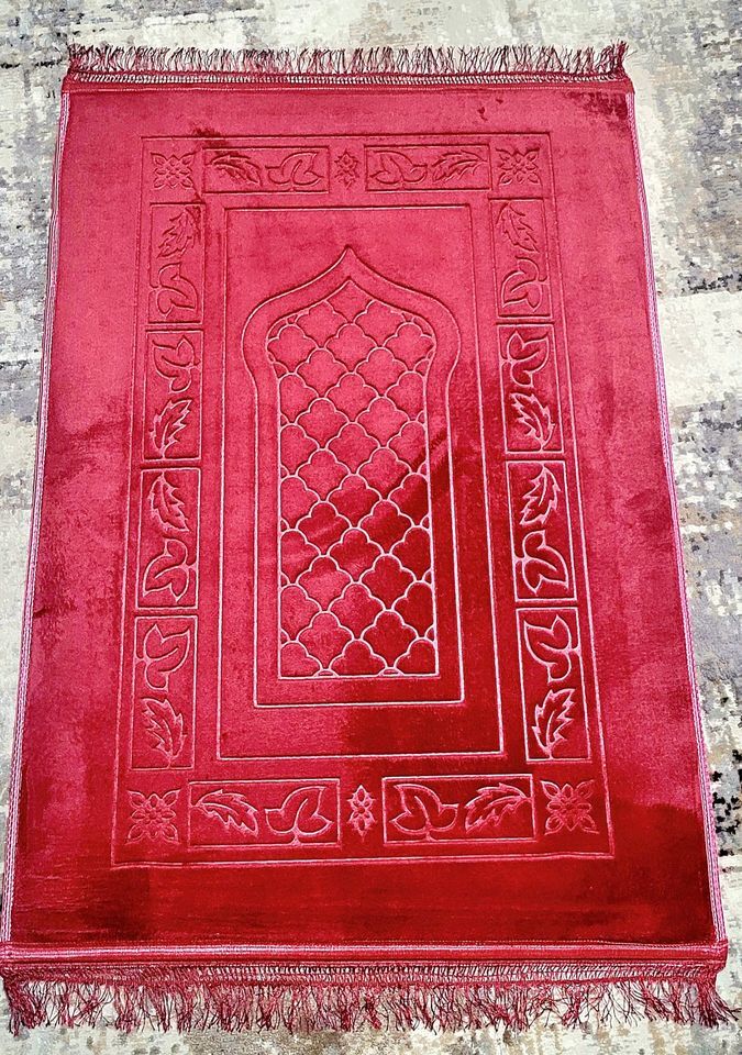Experience the comfort and beauty of our Islamic Prayer Mat - the perfect companion for your daily Salat.